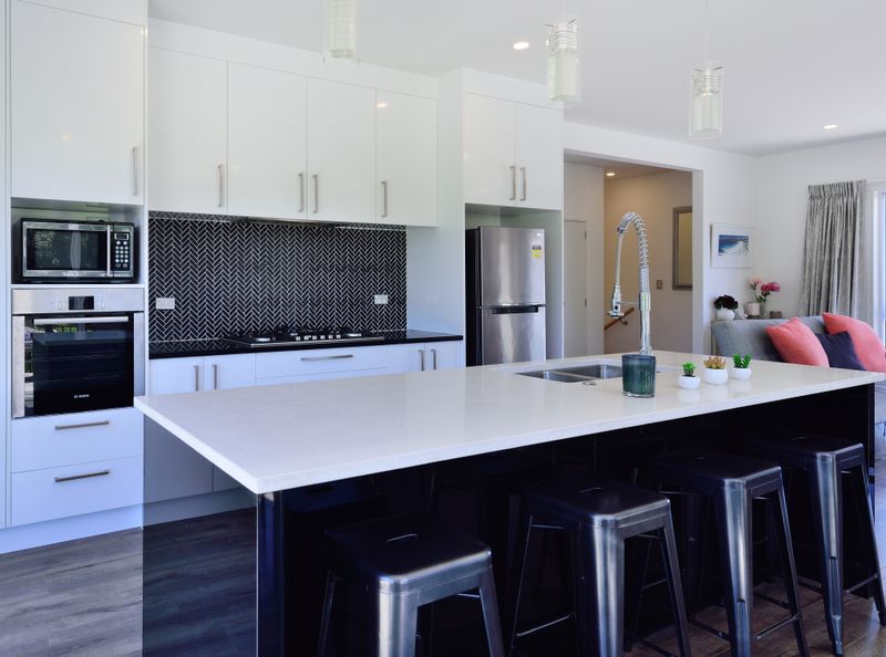 The spacious open plan living allows for easy-living all on one level with the stunning modern black & white kitchen all connecting to multiple outdoor areas.